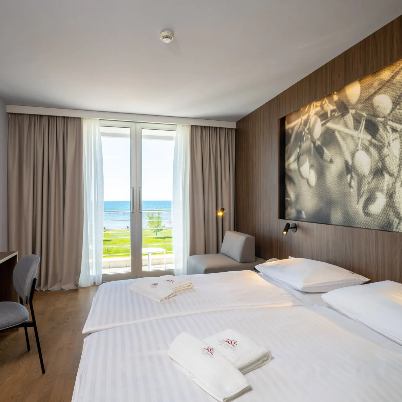 Že ob prihodu so gostje deležni toplega sprejema in brezhibne storitve. Prostorne in elegantno opremljene sobe nudijo mirno in sproščujoče vzdušje, medtem ko kategoriji Deluxe in Superior ponujata čudovit razgled na morje ali vrt. Vsaka podrobnost je skrbno zasnovana z namenom zagotavljanja udobja, sprostitve in popolnega zadovoljstva.